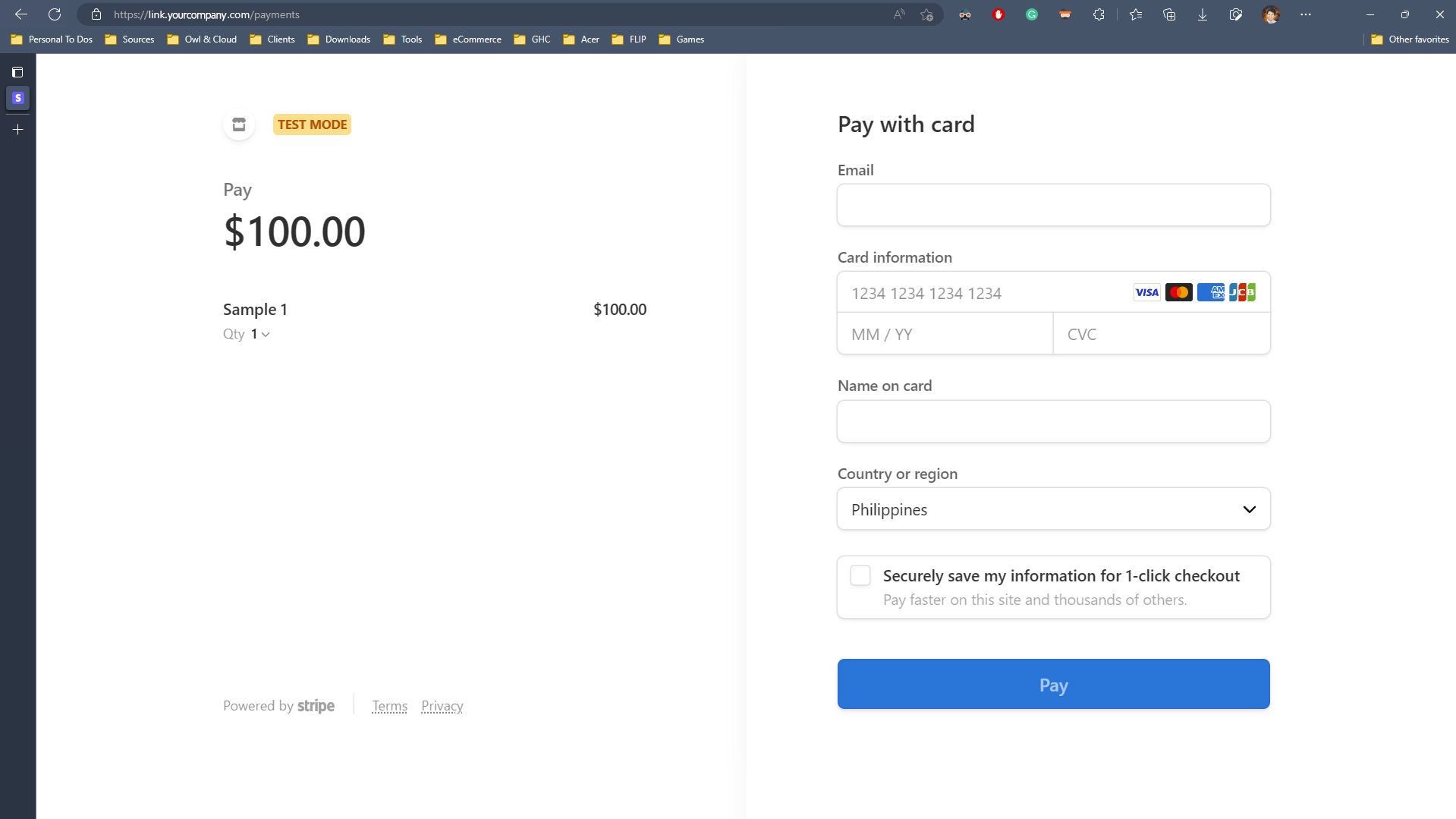 So, you eliminate that cost when you opt to do business through Stripe Payment Links. However, when you use a Stripe Payment Link, your payment page's URL would look like https://buy.stripe.com/[code].