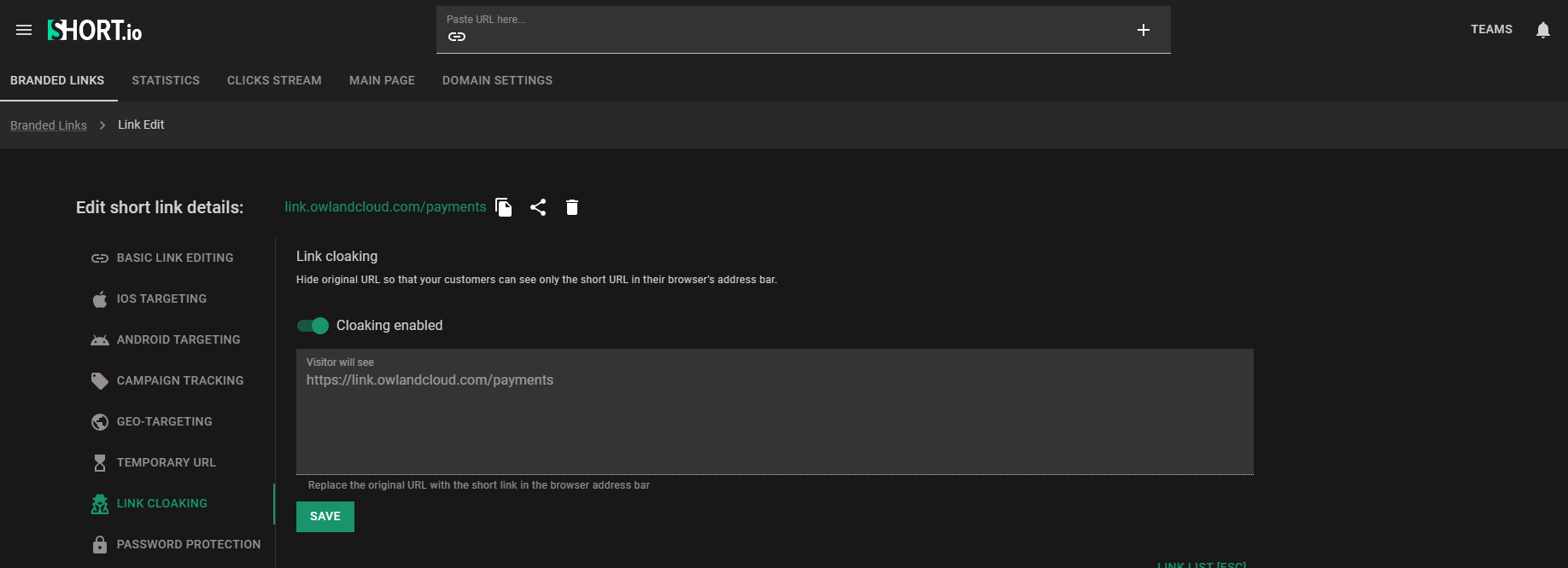 Note: The Link Cloaking feature is available for Short.io's Personal Plan and up.