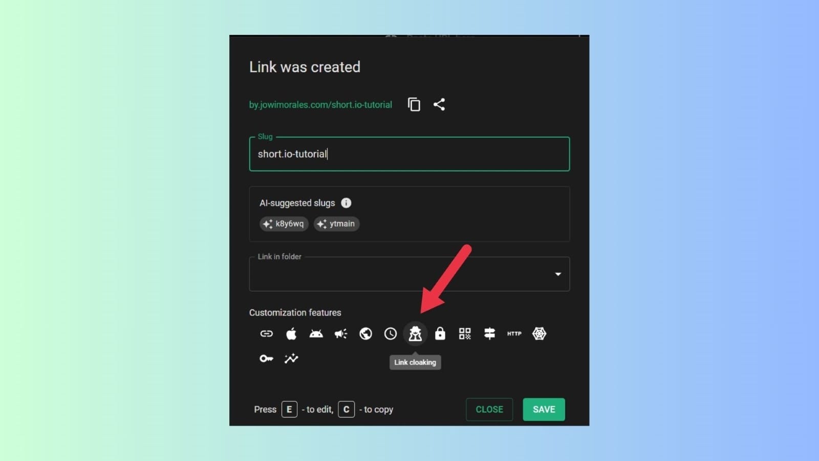 - Click the Link Cloaking icon.