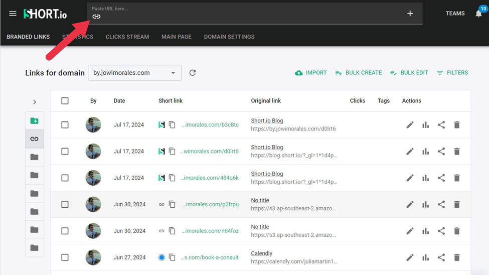 - Log into your Short.io account (If you don’t have one, create one. It’s free!).