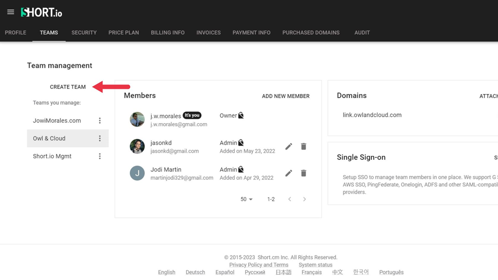 How to Set Up Short.io's Teams Feature