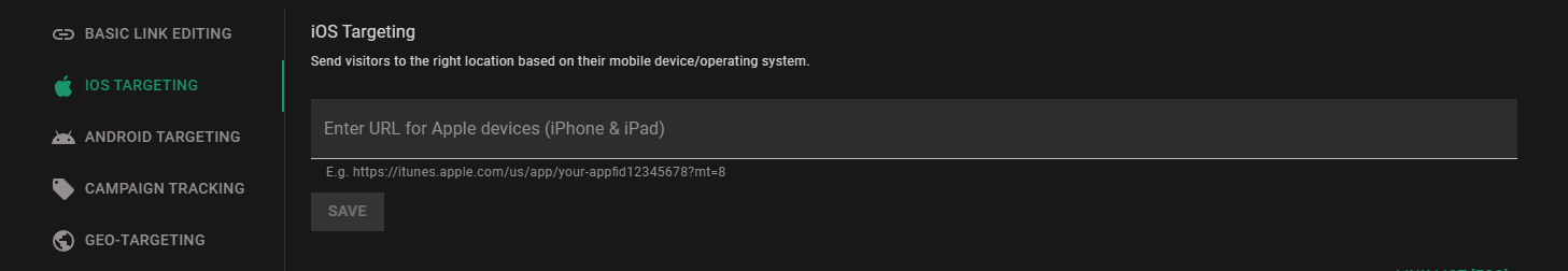 Android- and iOS- targeting are both forms of mobile targeting. This feature called “mobile links” is available in Short.io.