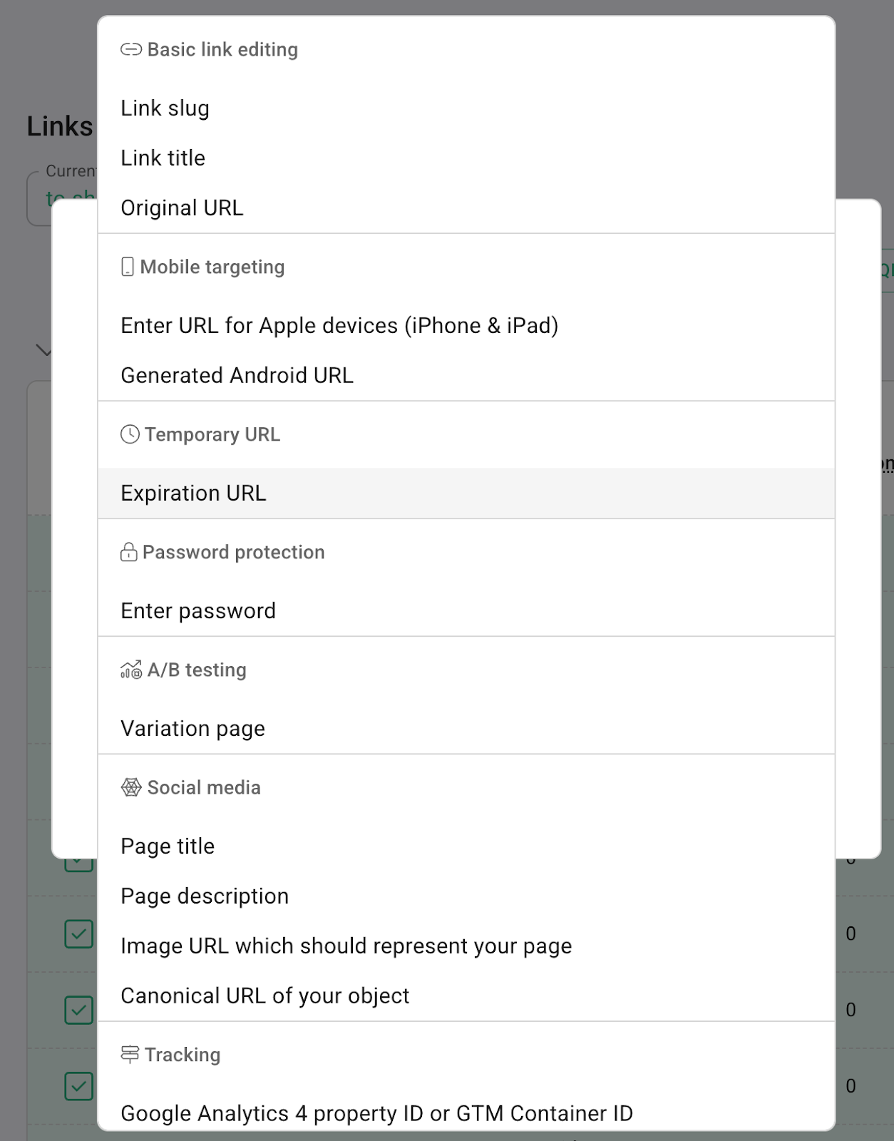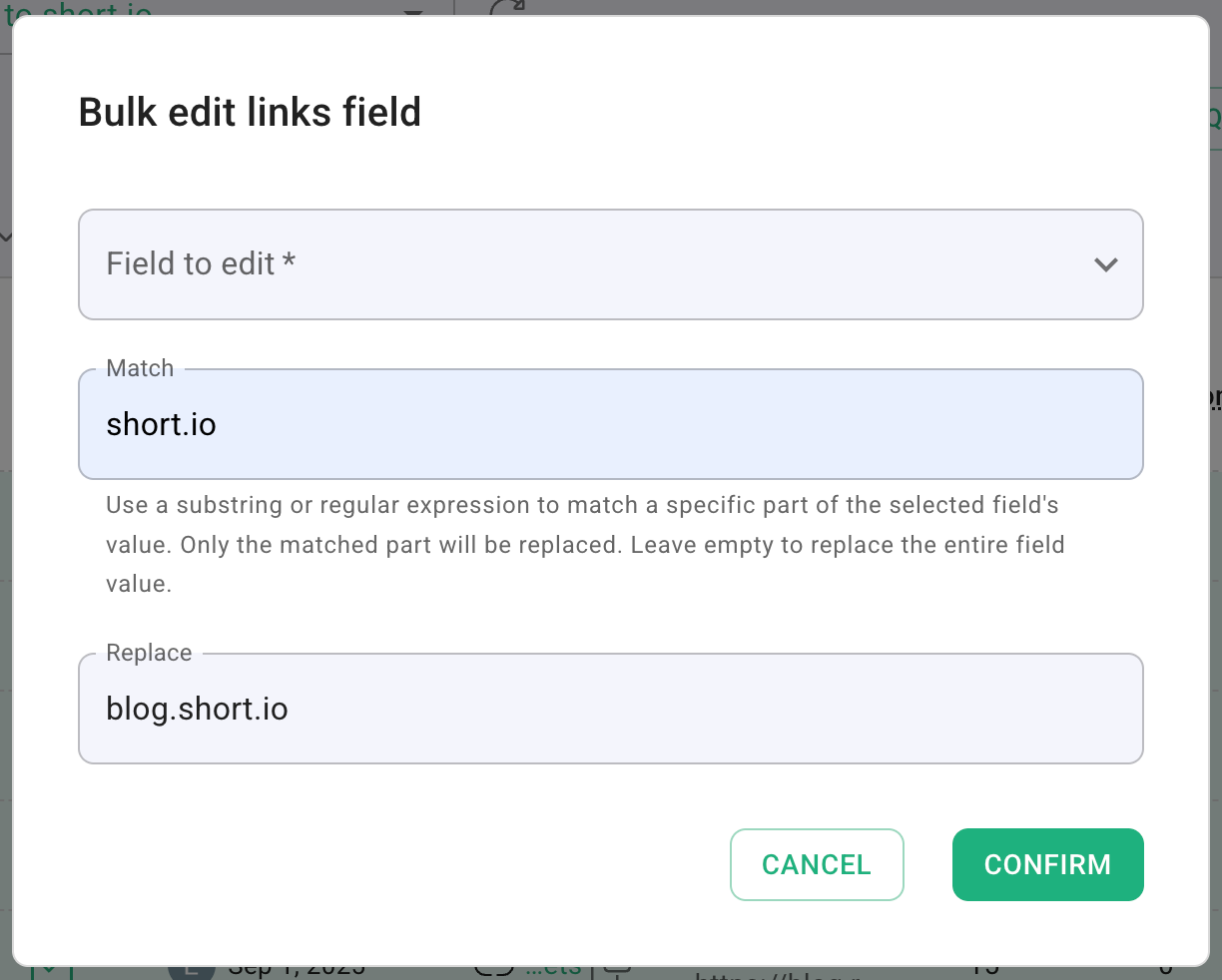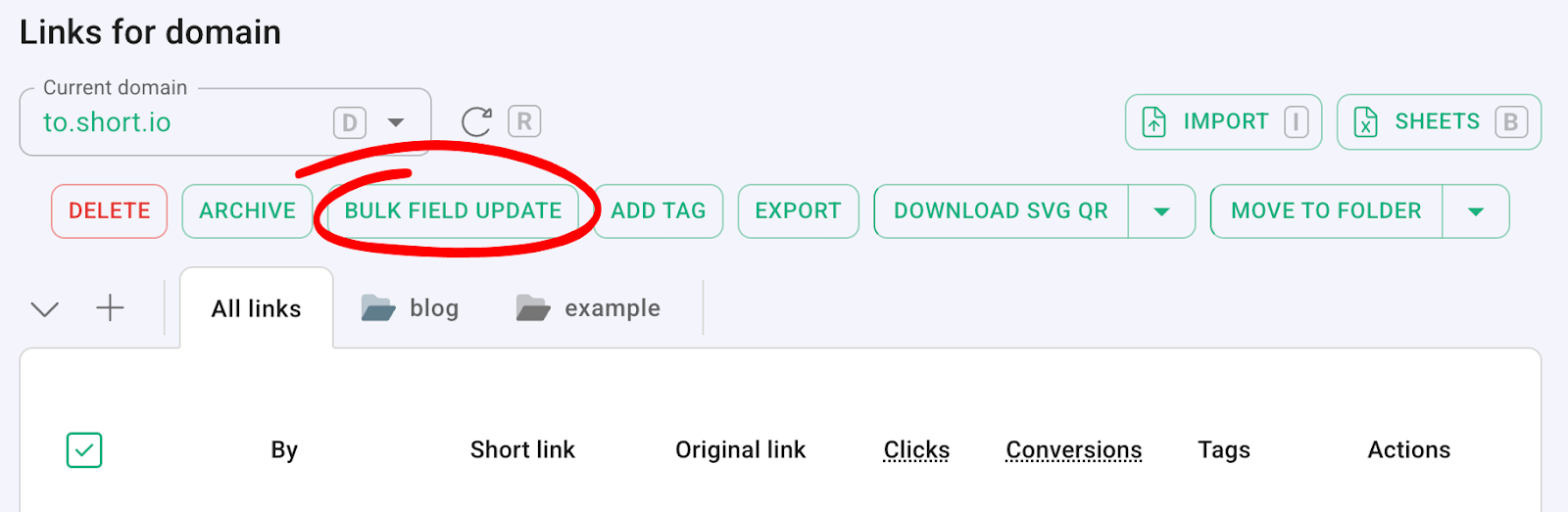 Now, we’ve also added the “Bulk Field Update” button, significantly expanding what you can do with your short links — individually or all at once.